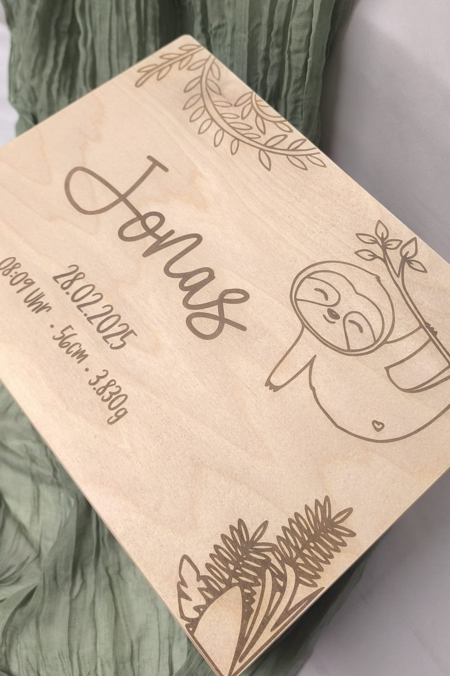 Erinnerungskiste - Dschungel mit Faultier & Geburtsdaten