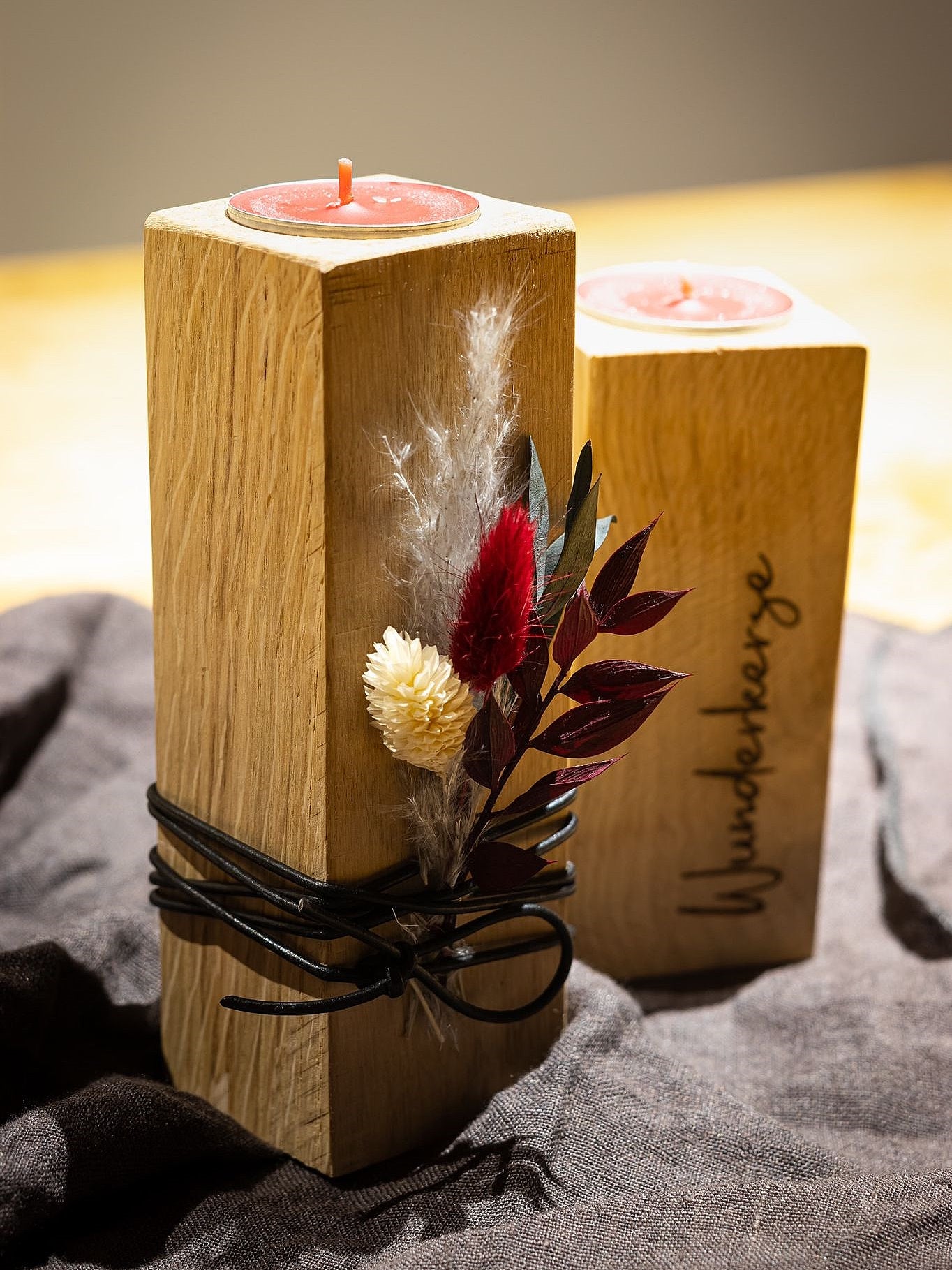 Moderne, handgefertigte Kerzenständer aus edlem Eichenholz, auf Wunsch auch mit Gravur.