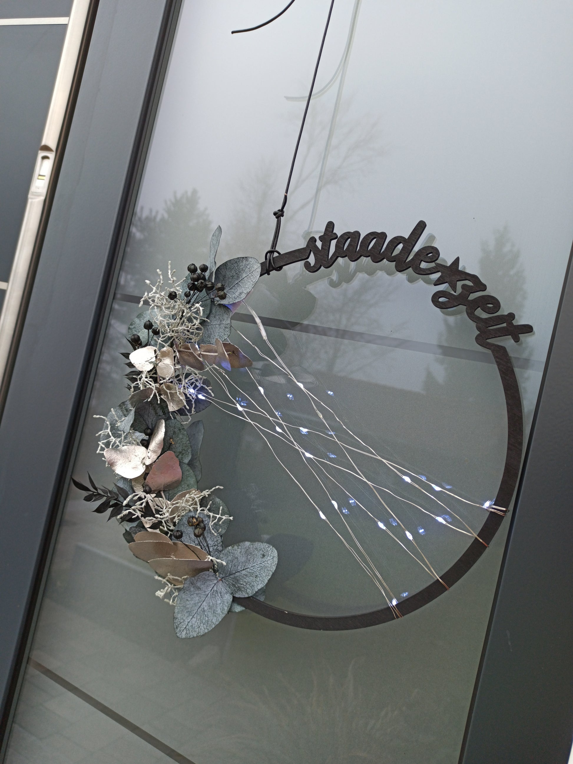 Die Trockenblumen können je nach Jahreszeit farblich variieren und auf Wunsch gerne an individuelle Vorlieben angepasst werden. Bitte um Absprache.