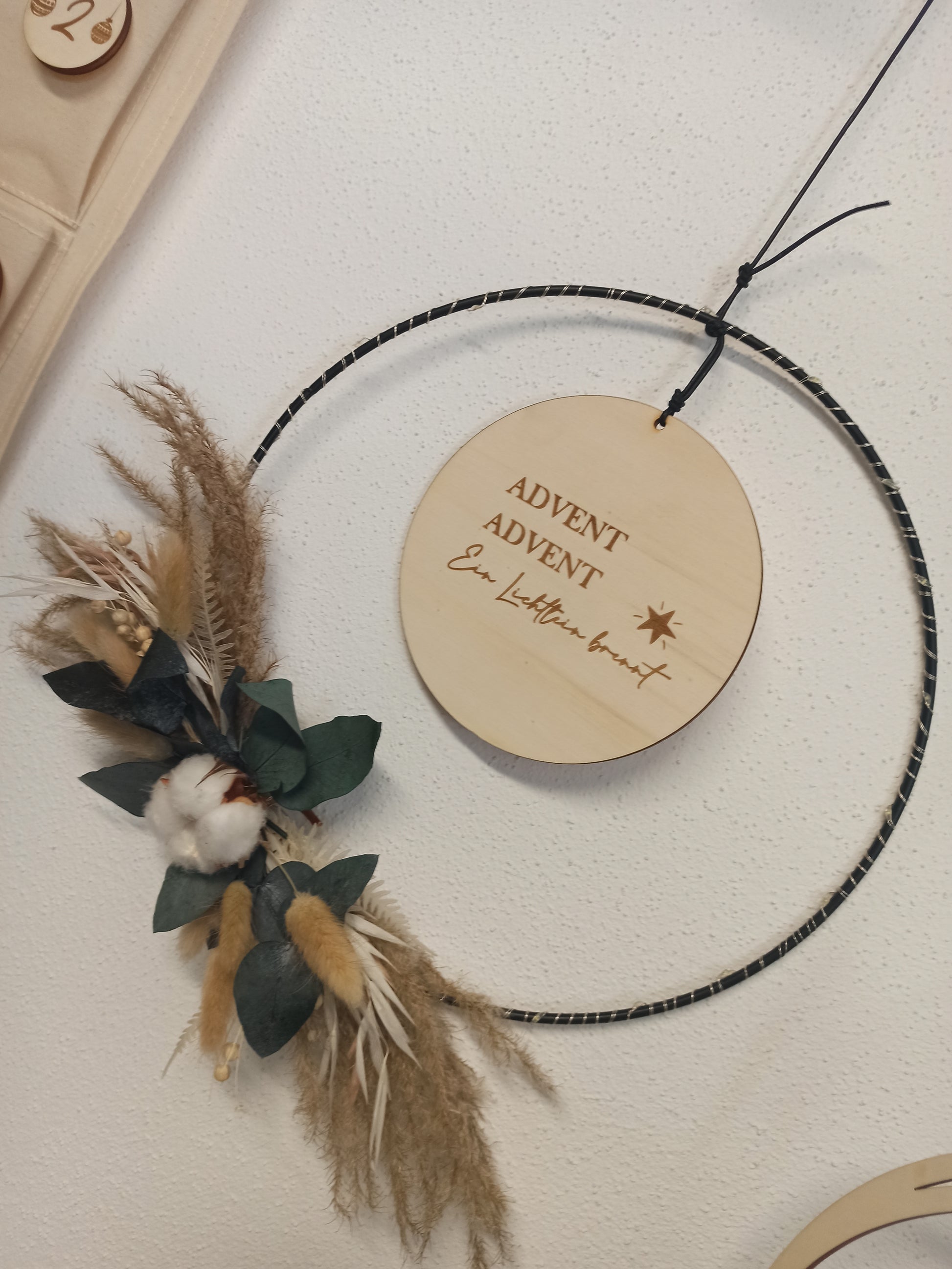 Liebevoll gestaltete Holz- oder Acrylscheibe passend für verschiedene Dekozwecke zur kalten Jahreszeit, alleinhängend oder auch zusammen in einem Metallring mit Trockenblumen ein Blickfang.