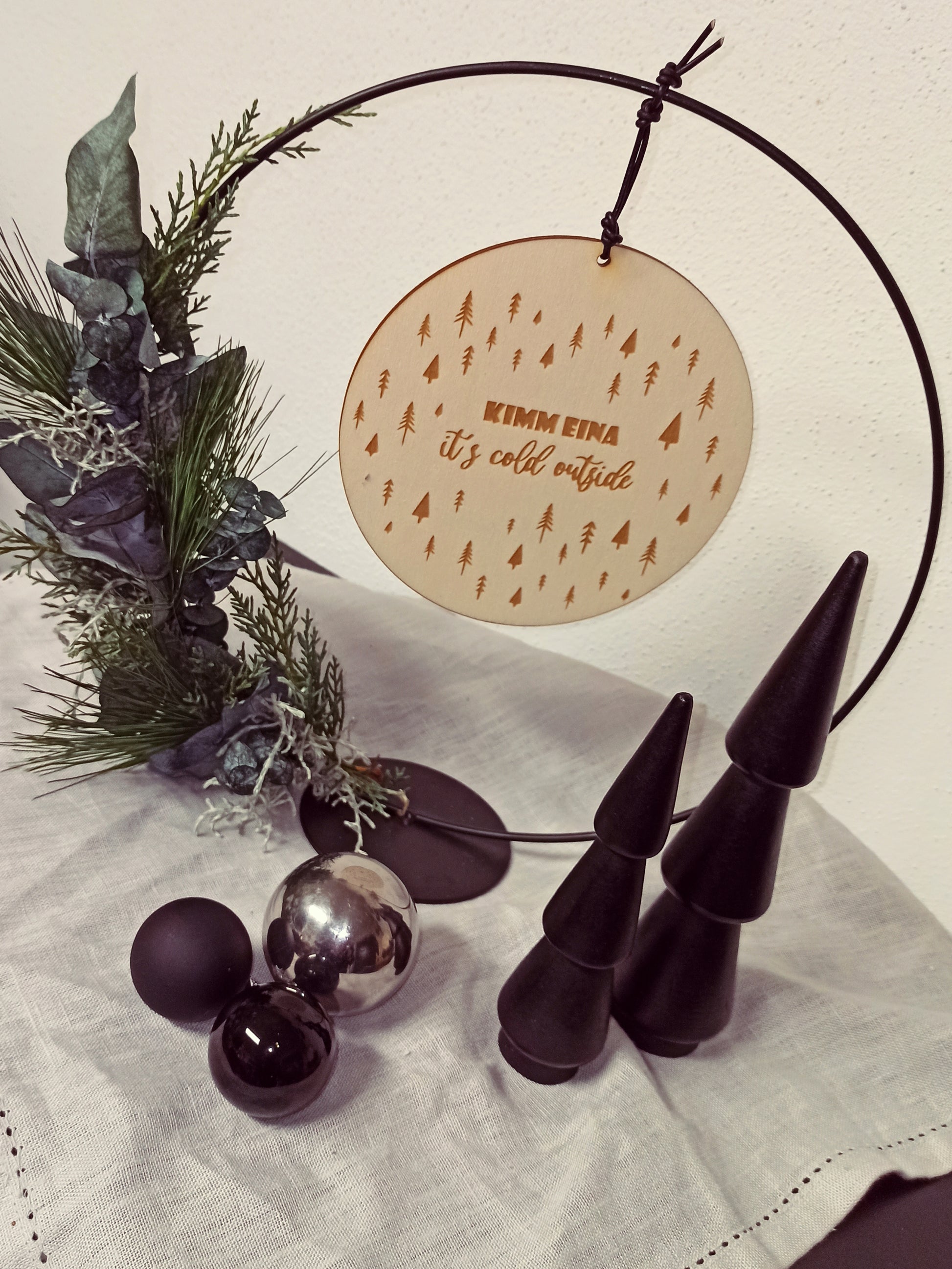 Liebevoll gestaltete Holz- oder Acrylscheibe passend für verschiedene Dekozwecke zur kalten Jahreszeit, alleinhängend oder auch zusammen in einem Metallring mit Trockenblumen ein Blickfang.